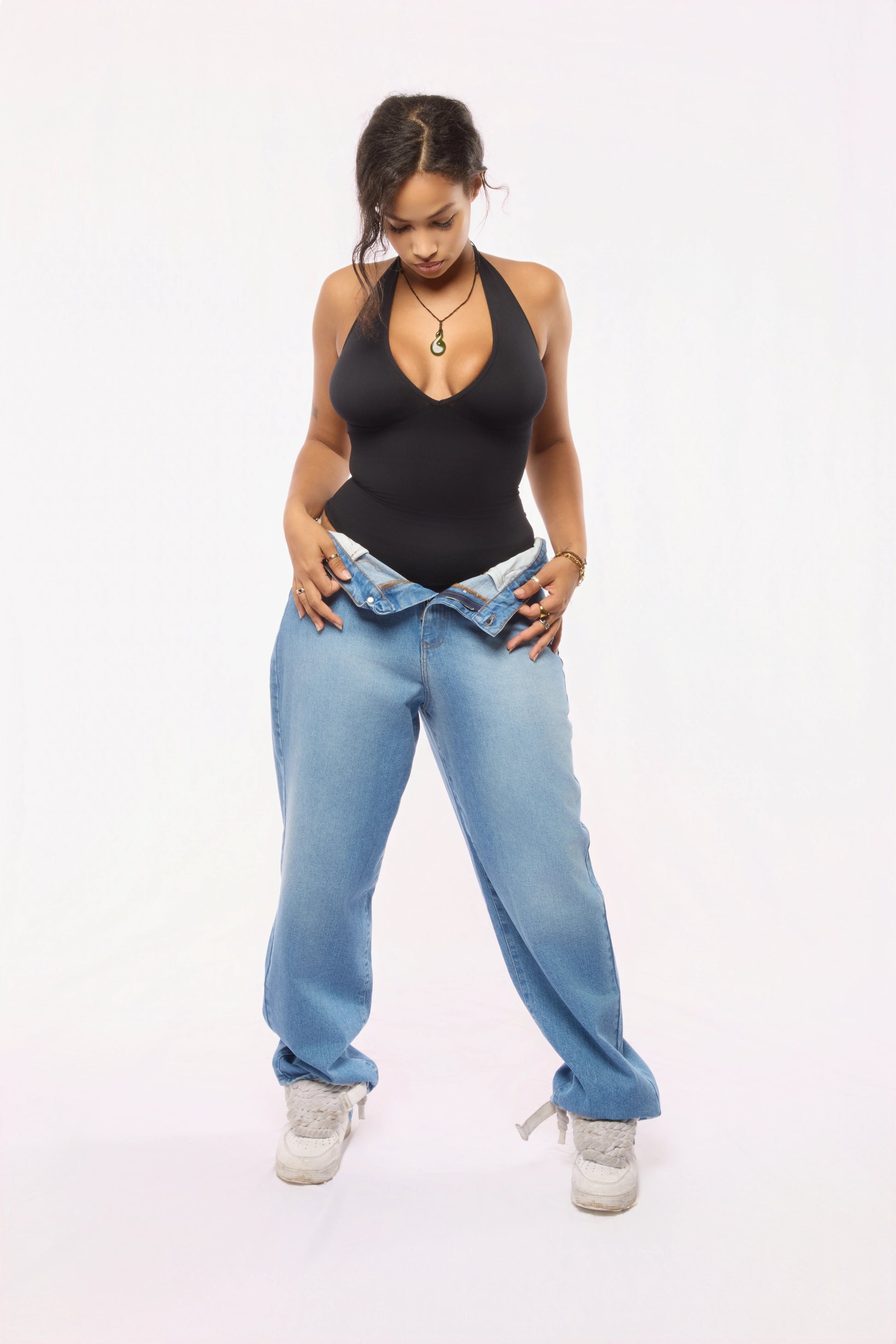Jean Baggy Femme Azur Jamyas – Confort et Style Intemporel